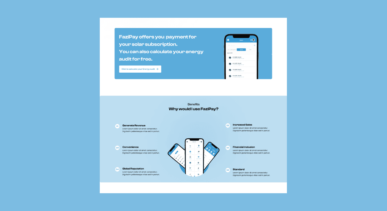 I was able achieve these goals for the new FaziPay website with these key features on the redesigned website